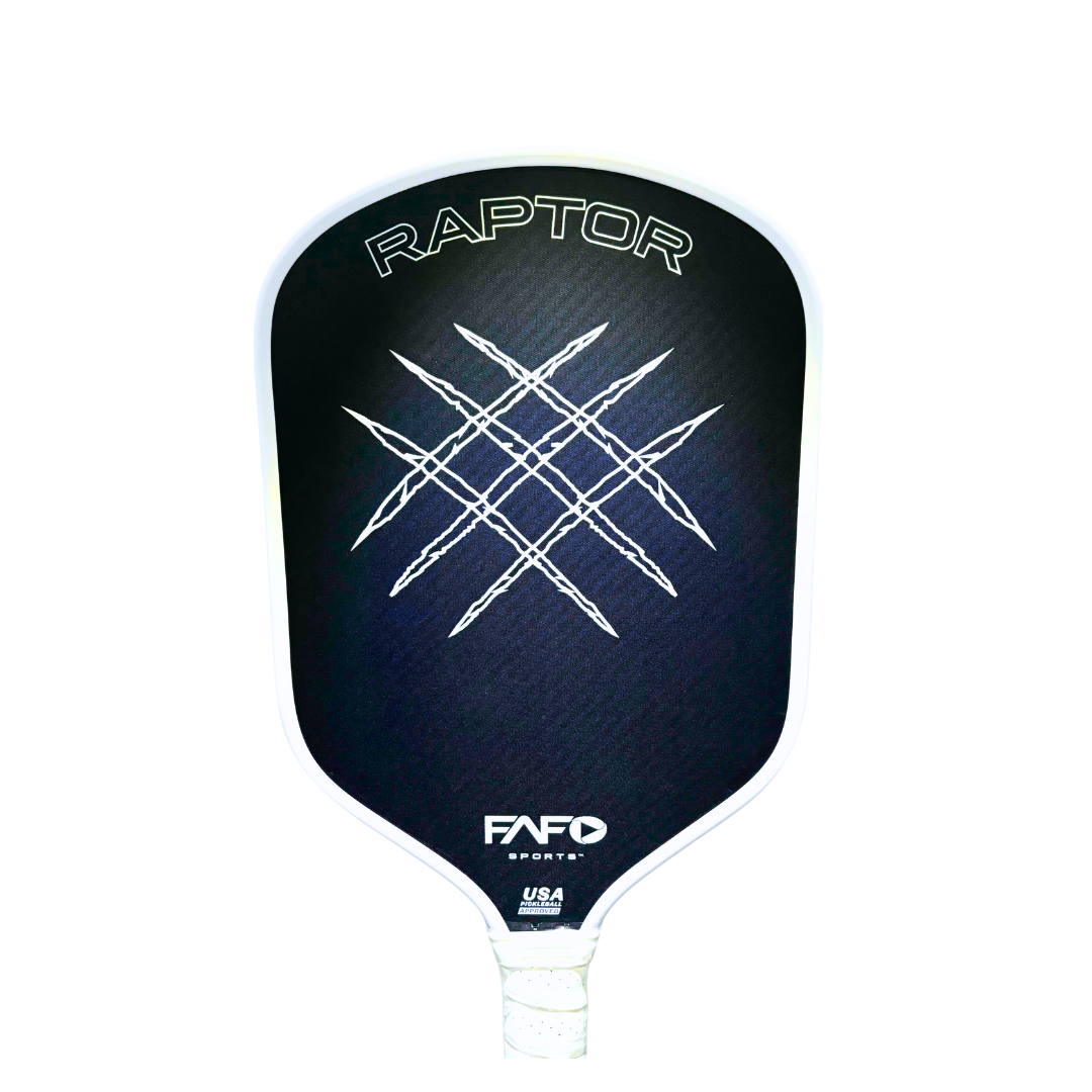 The Raptor paddle is a powerhouse and not for the feint of heart. Ideal for those looking for more power, spin and control, without sacrificing touch.